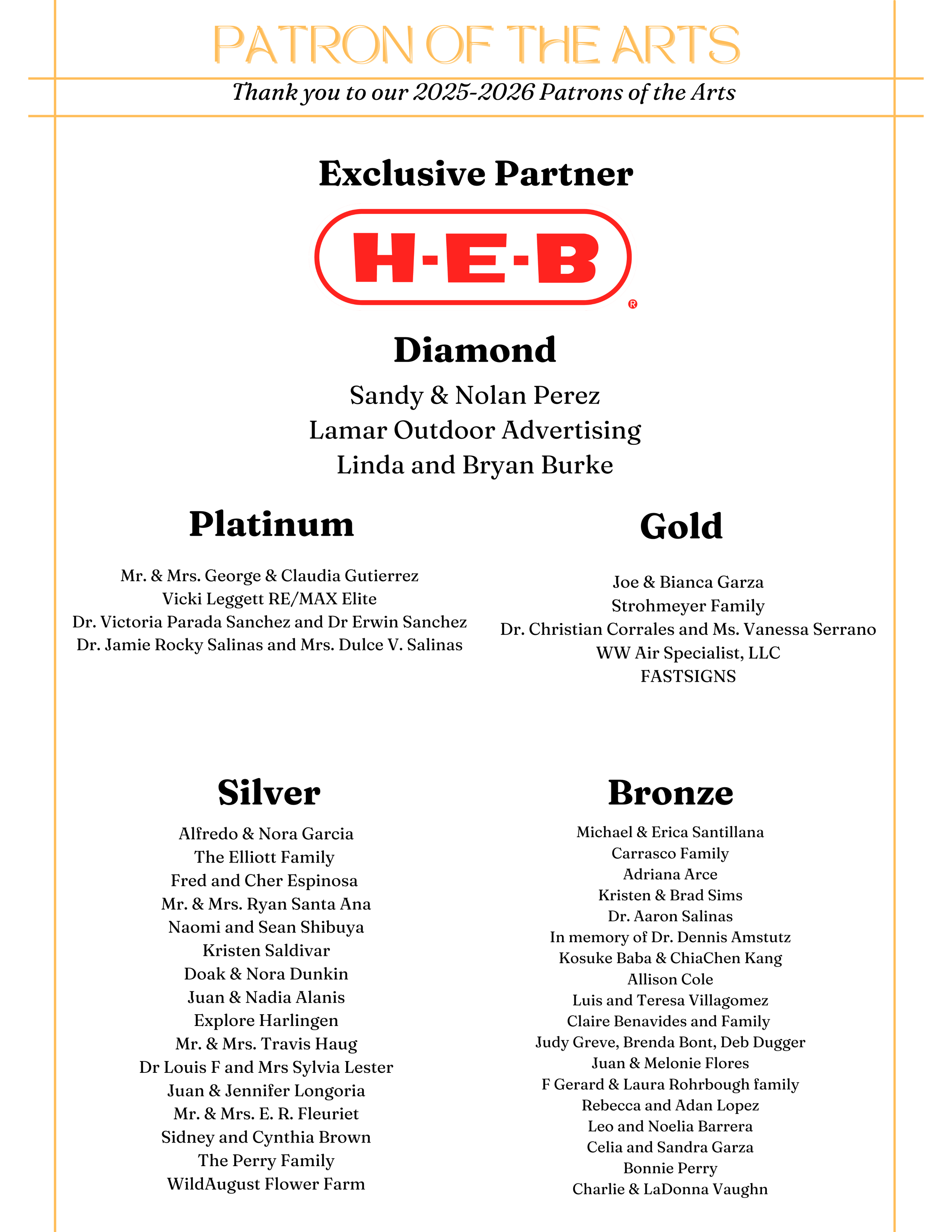 By becoming a Patron of the Arts, you are supporting Musical Theater and straight play productions from students that represent HCISD.